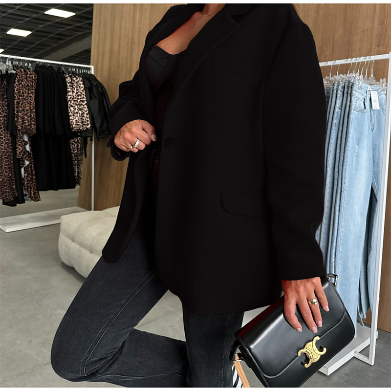 Women's Blazer Button Plain Comfortable Fashion Regular Fit Outerwear Long Sleeve Winter Black S