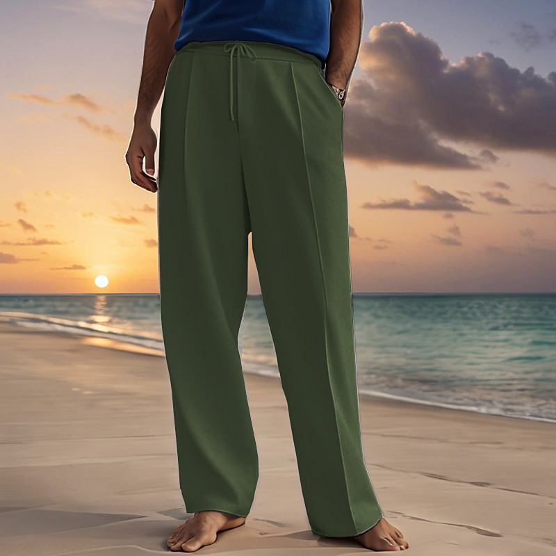 Men's Cotton Pants Pocket Drawstring Elastic Waist Plain Comfort Breathable Vacation Beach Boho Black White