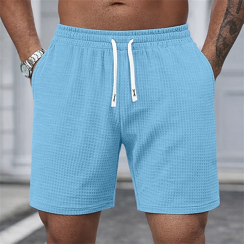 Per uomo Pantaloncini Waffle Shorts Pantaloncini casual Testurizzato Semplice Comodità Traspirante Lunghezza al ginocchio Casuale Quotidiano All'aperto Vacanza Moda Nero Bianco Micro-elastico