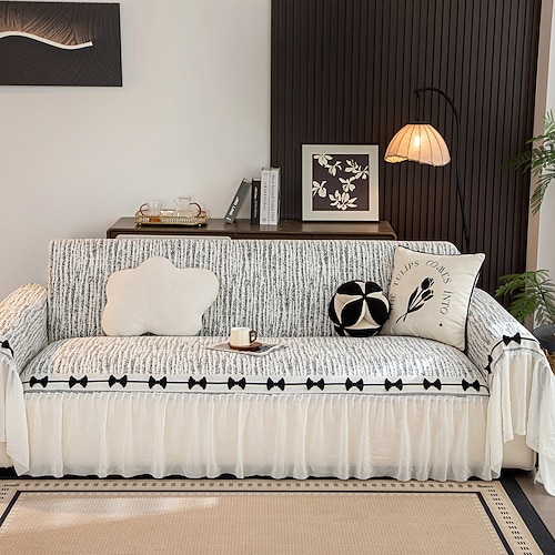 Copridivano con gonna a fiocco per animali domestici, copridivano stampato adatto agli animali domestici, elegante copridivano antiscivolo antipolvere per divani da 1 a 4 posti e divani a L