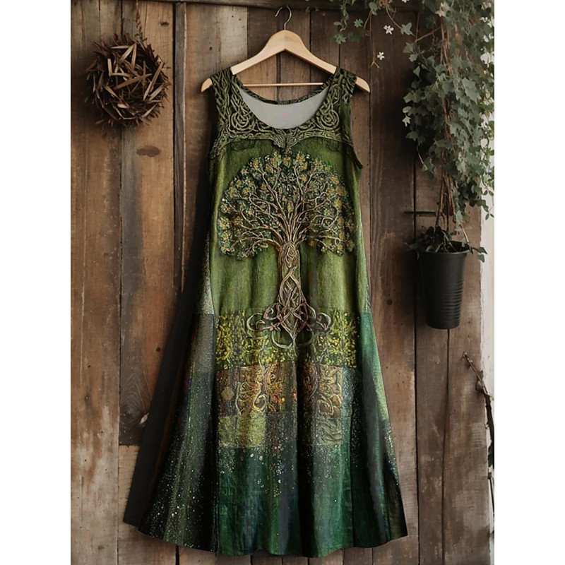 Women's Vintage Viking Celtic Knot Gradient Art Midi Dress Sundress A Line Dress Vacation Casual Boho Going out Regular Fit Floral Graphic Leaf Sleeveless U Neck