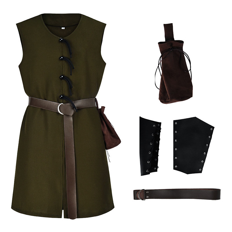 Retro Vintage Medieval Renaissance Accesories Set Tunic Warrior Viking Fancy Dress Men's Viking Halloween Carnival Performance LARP Ren Faire Adults' Vest Belt Bag
