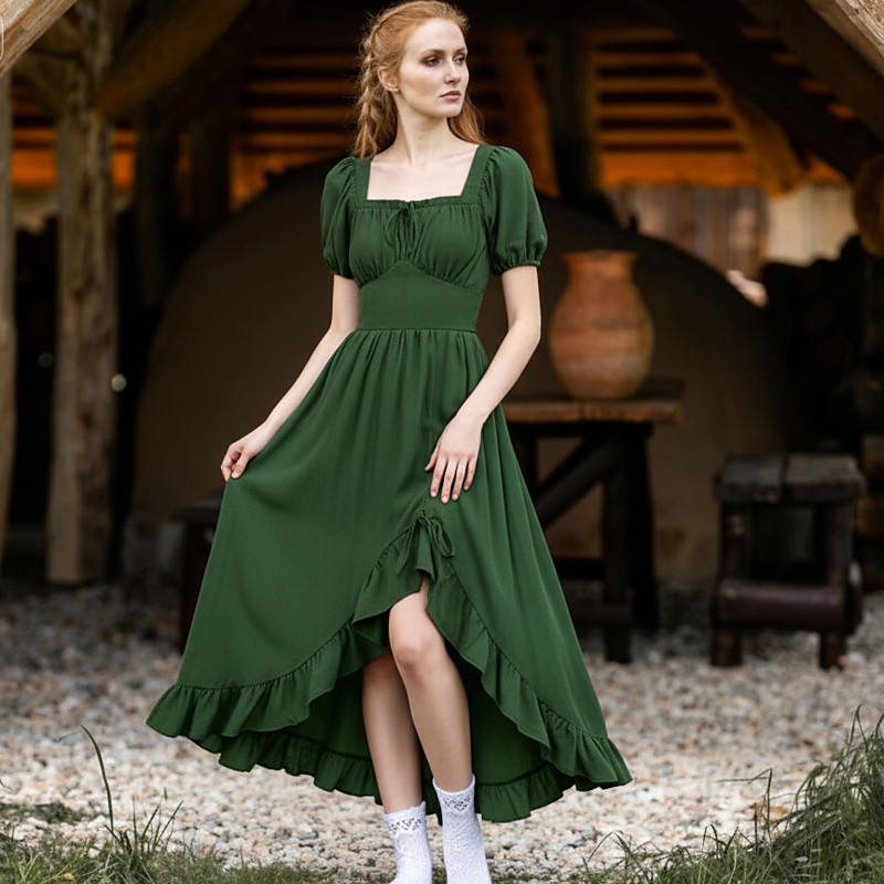 Medieval Ankle Length Dress Viking Outlander Elven Fancy Dress Women's Halloween Carnival Masquerade Party Evening LARP Ren Faire Adults Dress All Seasons