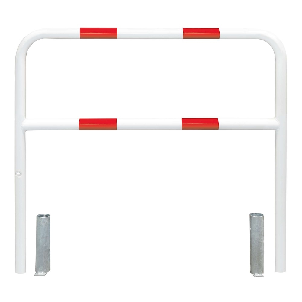 PROREGAL Schutzbügel als Umlaufsperre inkl. Bodenhülsen | Herausnehmbar mit Dreikantschloss | HxB 130x150cm | Rohr-Ø 6cm | Rot-Weiß