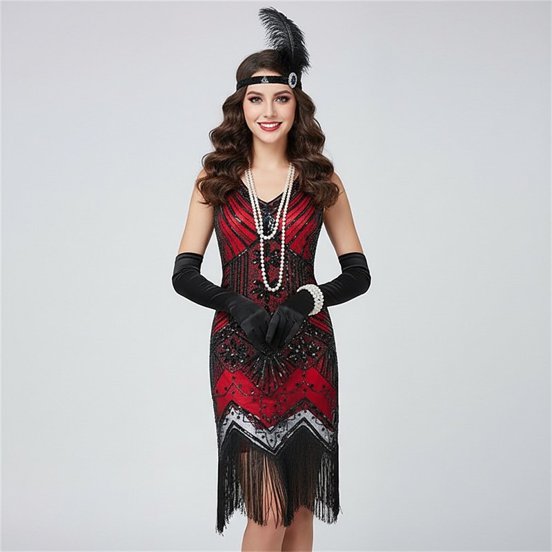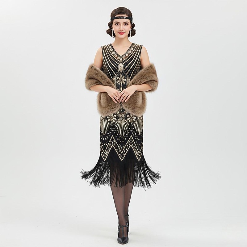 Roaring 20s 1920s Knee Length Flapper Dress Sleeveless The Great Gatsby Sequins Fringe V Neck Fancy Dress Women's Christmas Carnival Masquerade Retro Theme Party Charleston Dance Adults' Dress