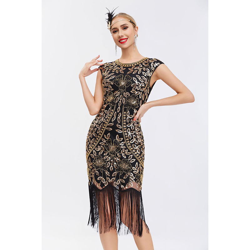 Roaring 20s 1920s Knee Length Flapper Dress Sleeveless The Great Gatsby Sequins Fringe Scoop Neck Fancy Dress Women's Christmas Carnival Masquerade Retro Theme Party Charleston Dance Adults Dress All