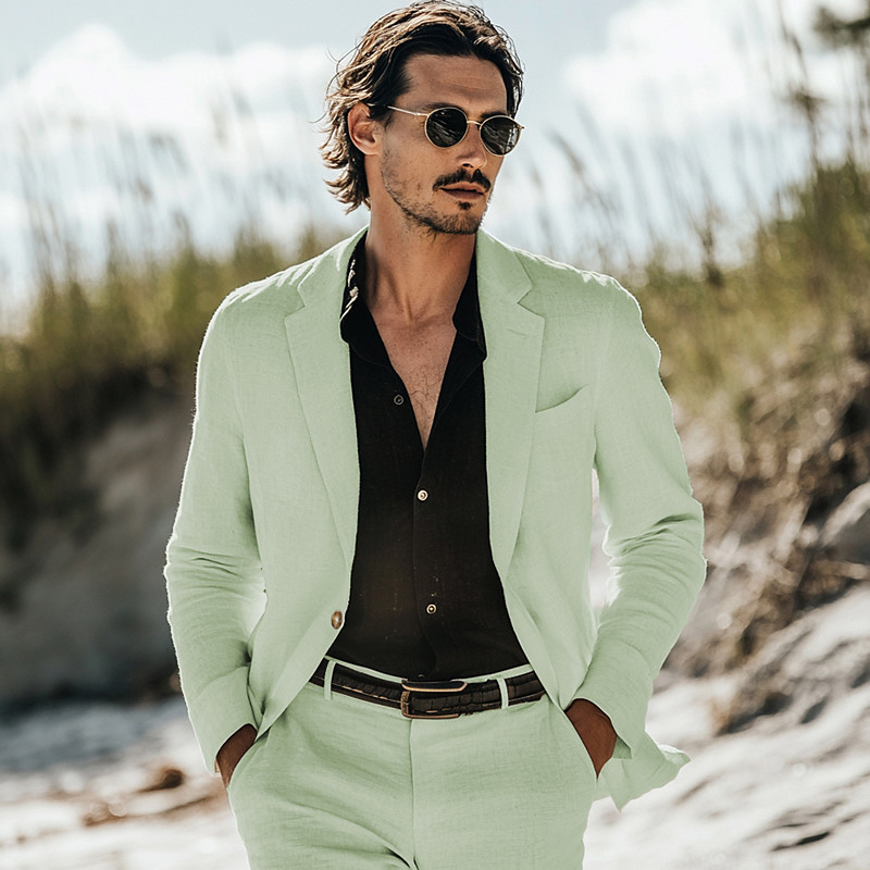 Men's Wedding Linen Suits Sage Half Lined Lightweight Summer Casual Solid Colored Standard Fit 2 Piece Single Breasted One-button