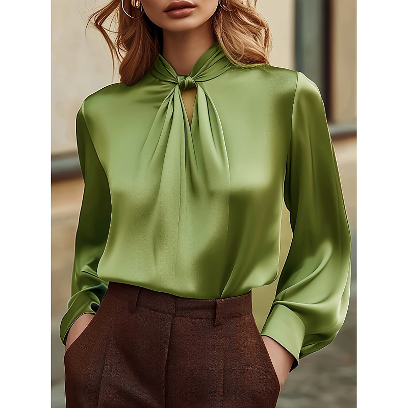 Women's Blouse Floral Stylish Casual Long Sleeve Crew Neck Regular Tops Daily Patchwork Sage Green Black Brown Apricot Spring Fall Winter