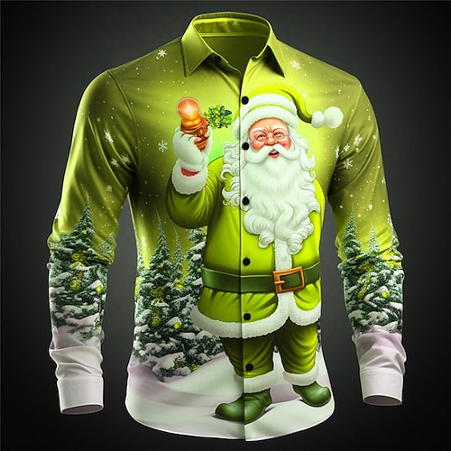 Weihnachten herren santa claus gedruckt hemden santa claus casual täglichen kleidung ausgehen herbstamp;Winter Turndown Langarmhemd aus 4-Wege-Stretchstoff in Weiß, Armeegrün, Rot S, M, L