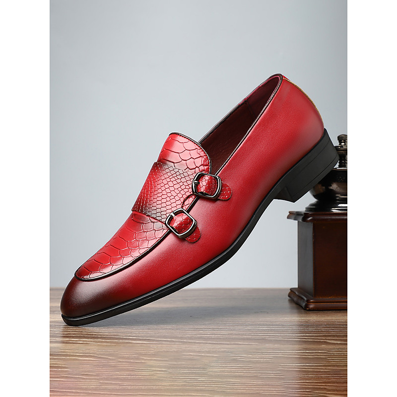 Men's Faux Leather Red Monk Strap Shoes – Elegant Stylish Formal Shoes for Weddings and Special Events