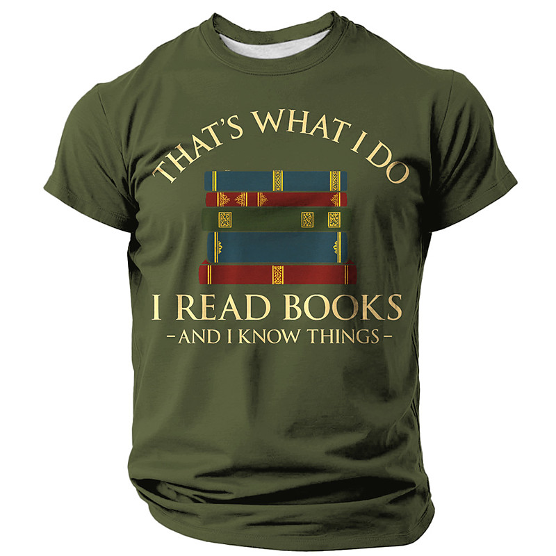 Mens Book Lover Graphic T-Shirt: 'That's What I Do I Read Books I Know Things' Quote Short Sleeve Tee