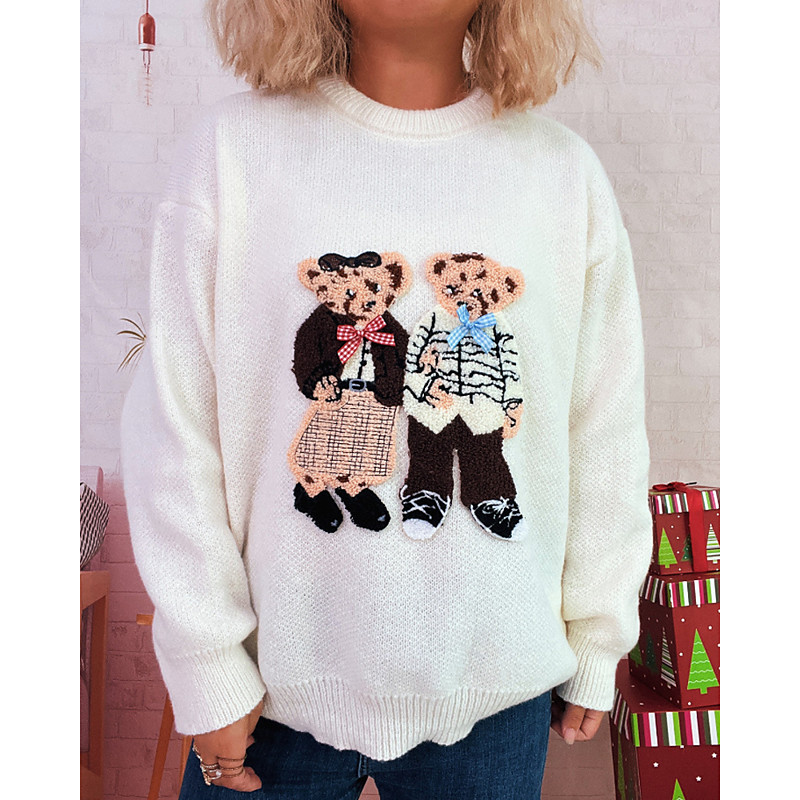 Women's Sweater Pullover Pom Poms Ugly Christmas Gifts Streetwear Floral Crew Neck Knitted Long Sleeve Regular Tops Knit Christmas Holiday Going out White Red Fall Winter