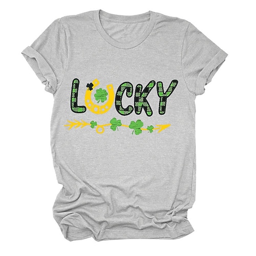Giorno di San Patrizio Festa di San Patrizio Per donna Maglietta Trifoglio Lettera Moda Manica Corta Girocollo Top Regolari Casuale Giorno di San Patrizio Stampato Blu Bianco Vino Verde Grigio chiaro