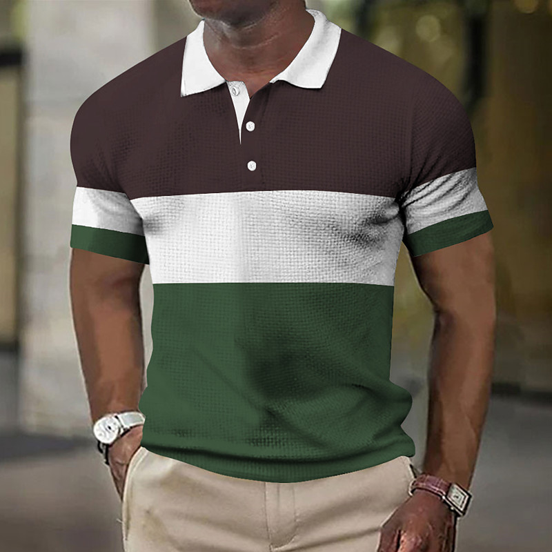 Men's Abstract Geometic Waffle Polo Shirts Short Sleeve Polo Shirts Collared Shirts Business Casual Business Athleisure Daily Wear 3D Print Buttons Summer Red Blue Green