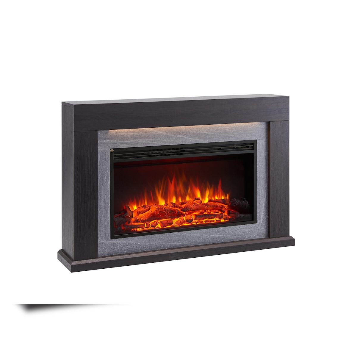 CrownFlame Elektrokamin Xerxes - Elektrischer Kamin Mit Heizung, LED-Beleuchtung, 3D-Flammeneffekt & Fernbedienung - Standkamin - Dunkelbraun