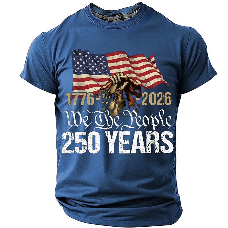 Men's American US Flag America's 250th Anniversary T Shirt Short Sleeve T shirt 3D Print Crew Neck Shirt Daily Military Street Daily Blue Black Red Summer Spring Clothing Apparel S M L XL XXL XXXL