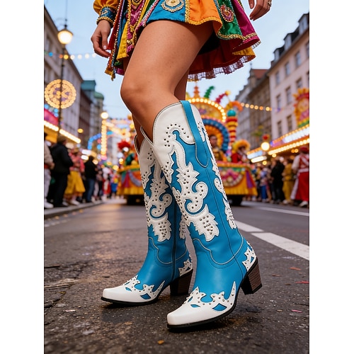 stivali da cowboy da uomo blu navy e neri con ricami dorati: eleganti stivali western per spettacoli teatrali, feste country e feste a tema