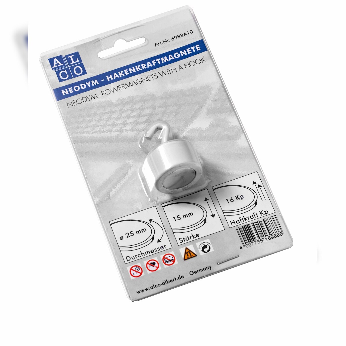 Alco Hakenmagnete, Neodym, Weiß, Ø 25 mm, Haftkraft min. 16 kp,