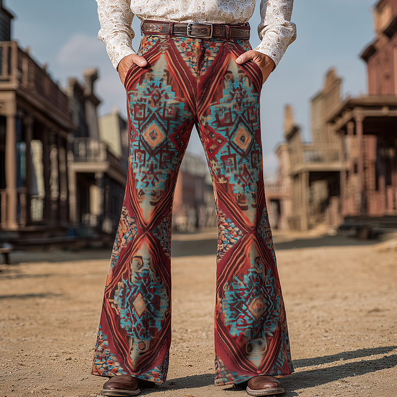 Men's Geometric Pattern Ethnic Indian Culture Trousers Disco Pants 60s 70s Bell Bottoms Mid Waist Western Vintage Retro Outdoor Vacation Party Side Pockets Flared Leg Pants Trousers Spring Fall 3D