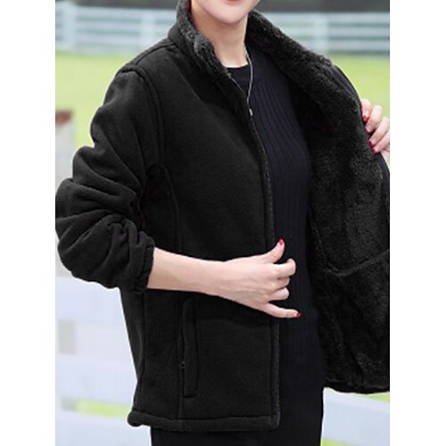 Per donna Giacca Sherpa Confortevole Traspirante Cerniera Tasca Casual Semplice Vacanza Streetwear Casuale Abbigliamento quotidiano Cerniera Regolare Collo alla coreana Vestibilità comoda Manica Lunga