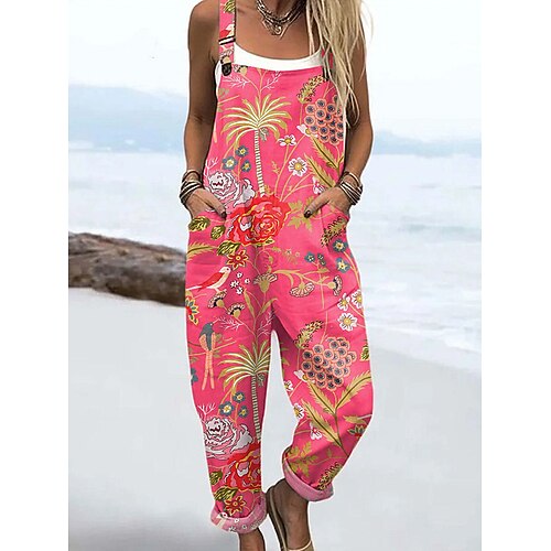 Per donna Salopette Attivo Floreale Senza Maniche Senza maniche Dritto Collo quadrato Tasca con tasca Vacanza Quotidiano Vestibilità comoda Rosso Blu Verde Estate
