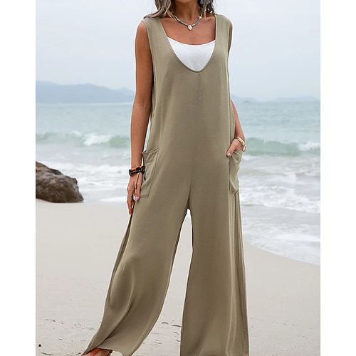 Per donna Normale Tuta Attivo Tinta unica Senza Maniche Gamba larga Scollo a V Tasca Quotidiano Vacanza Vestibilità comoda Nero Rosa Verde Estate