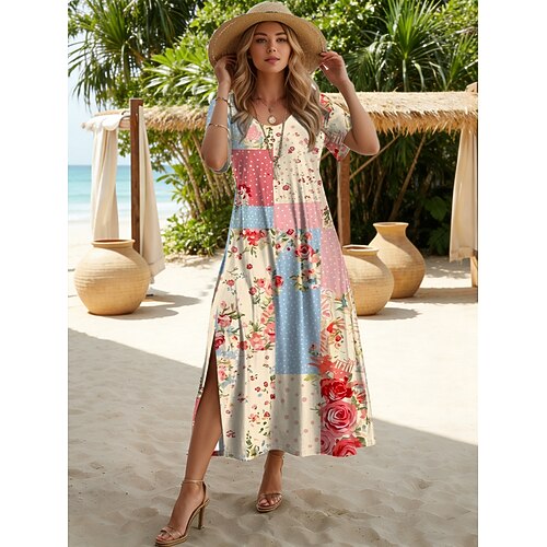 Per donna Abito Midi Abito a trapezio Casual Quotidiano Vestibilità comoda Floreale Grafico Manica Corta Girocollo Blu Rosa Viola Verde Estate Primavera