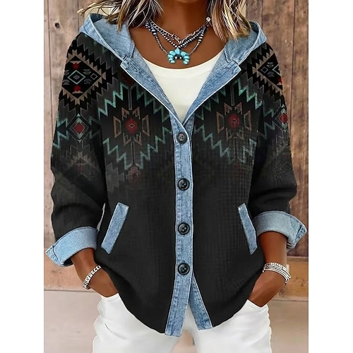 Per donna Giacca Casual Giacca con Cappuccio Caldo Confortevole Cerniera Tasca Bottoni Casual Geometrico All'aperto Vacanza Abbigliamento quotidiano Uscire Regolare Con Cappuccio Vestibilità comoda