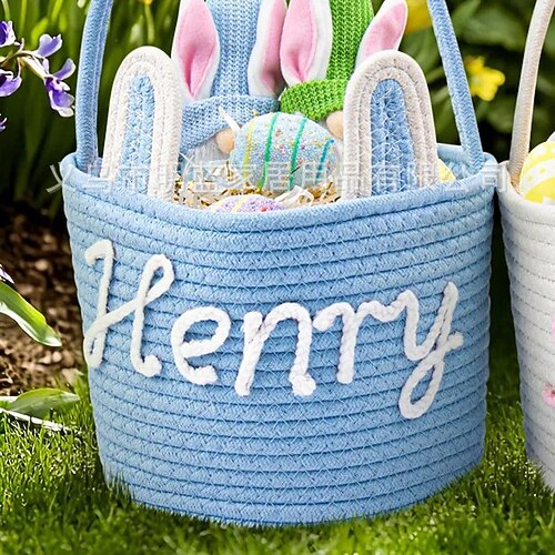 cesto regalo di Pasqua orecchie di coniglio cesto portaoggetti intrecciato fatto a mano uovo di Pasqua cestino portatile