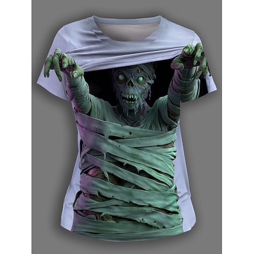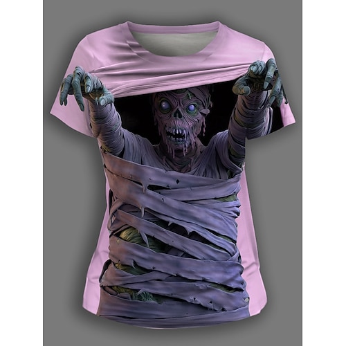 T-shirt da donna Grafica Teschi Casual Divertente Maniche Corte Girocollo Collo Rotondo Regolari Top Stampa Quotidiana Gialla Blu Viola Verde Estate