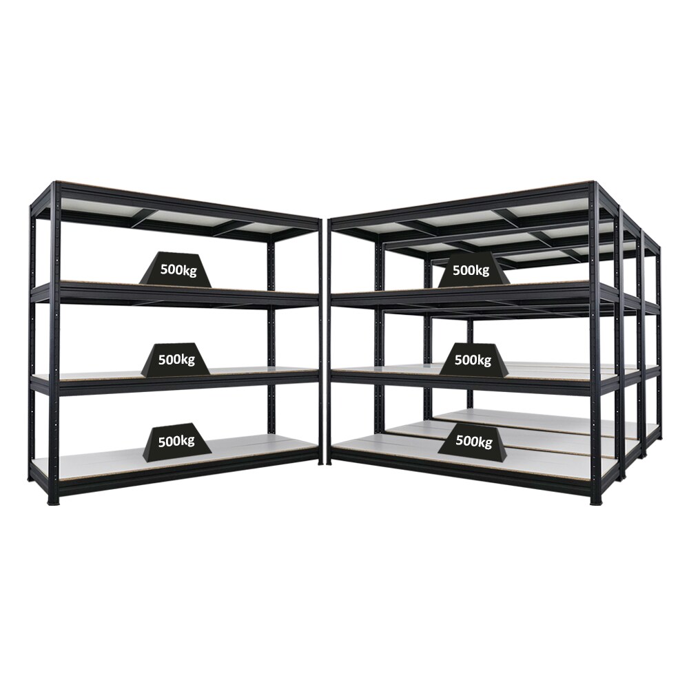 Proregal Mega Deal | 4x Schwerlastregal DINO | HxBxT 180x200x60cm | 4 Melamin-Ebenen 16mm | Fachlast 500kg | Schwarz