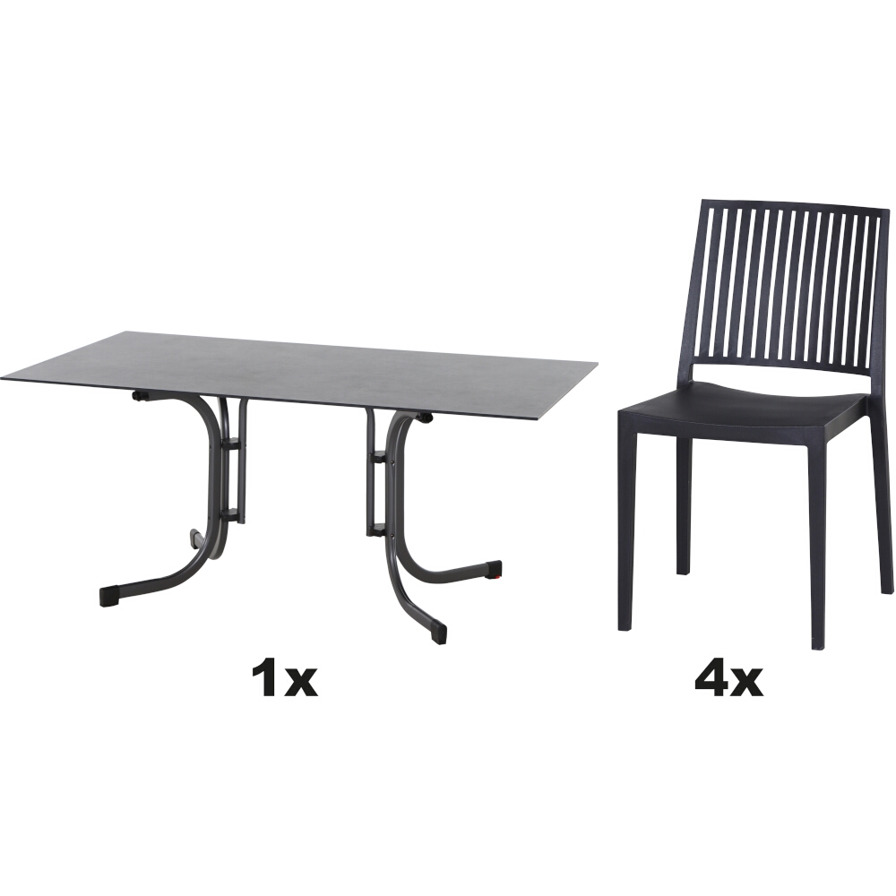 Happy Garden Conjunto de jardín 4 plazas resina trenzada negra tela gris