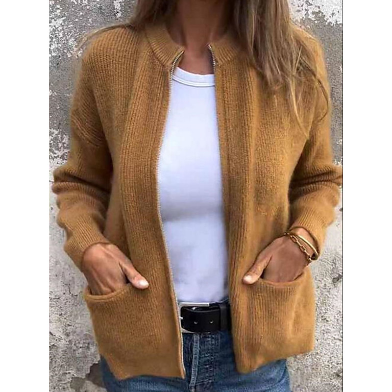 Women's Coat Comfortable Breathable Pocket Fashion Daily Plain Training Outdoor Casual Open Front Short Stand Collar Regular Fit Long Sleeve Outerwear Black Orange Gray Fall Winter