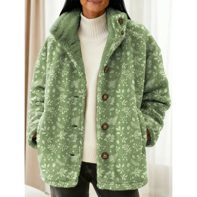 Women's Winter Coat Warm Comfortable Buttons Vintage Fashion Classic Modern Floral Formal Vacation Home Casual Short Regular Stand Collar Regular Fit Long Sleeve Outerwear Pink Blue Purple Fall Winter