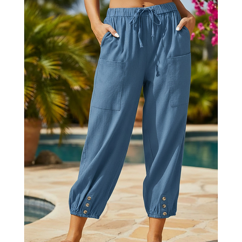 Women's Cotton Linen Pants Chinos Streetwear Casual Full Length Medium Waist Plain Drawstring Pocket Comfortable Inelastic Daily Outdoor Vacation Blue Grey Black White Summer Spring Loose Fit