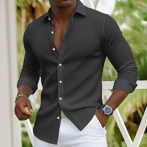 Herren Hemd Sommerhemd Knopfhemd Lässiges Hemd Schwarz Weiß Marineblau Blau Grau Langarm Glatt Umlegekragen Festtage Urlaub Button-Down Bekleidung Modisch Brautkleider schlicht Komfortabel
