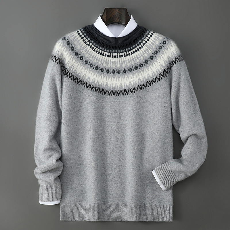 maglione natalizio da uomo in pura lana e cashmere di alta qualità, girocollo, classico pullover lavorato a maglia argyle, maglione Fair Isle, morbido, caldo e traspirante