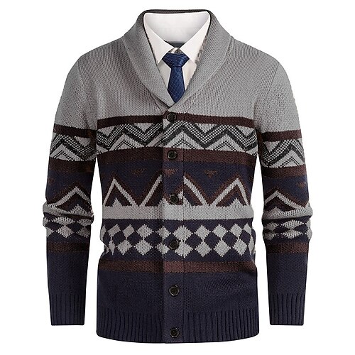 Per uomo Felpa Cardigan Maglione Fair Isle A Coste Maglia Top Regolari Lavorato a maglia Geometrico Collo a scialle Vacanza Moda Casuale Abbigliamento quotidiano Abbigliamento Primavera Autunno