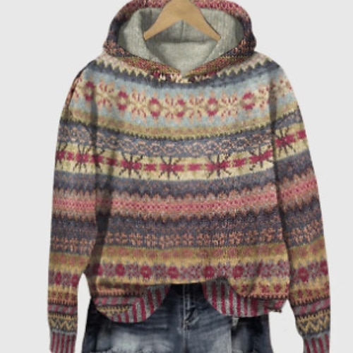 Damen Weihnachtspullover Fair Isle Pullover Pullover Fair Isle Sweater Streetwear Lässig Blumen Mit Kapuze Gestrickt Druck Langarm Normale Oberteile Stricken Outdoor Täglich Ferien Braun Herbst Winter