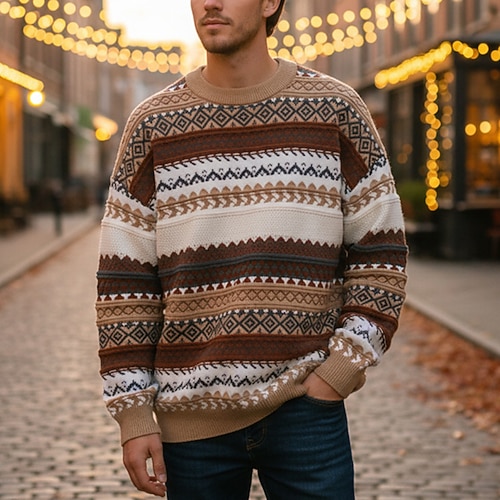 Per uomo Felpa Maglione Maglione Fair Isle A Coste Maglia Top Regolari Lavorato a maglia Slim Fit Geometrico Girocollo Maglieria Contemporaneo Casuale Abbigliamento quotidiano Abbigliamento Autunno
