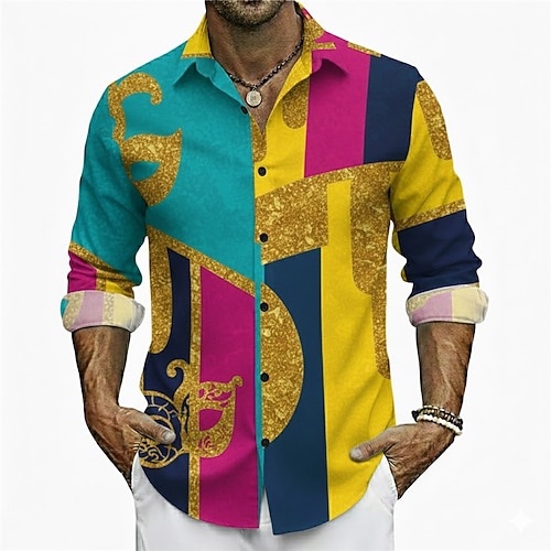 Men's Mardi Gras Shirt – Minimal Carnival Party Button Up Graphic Shirt