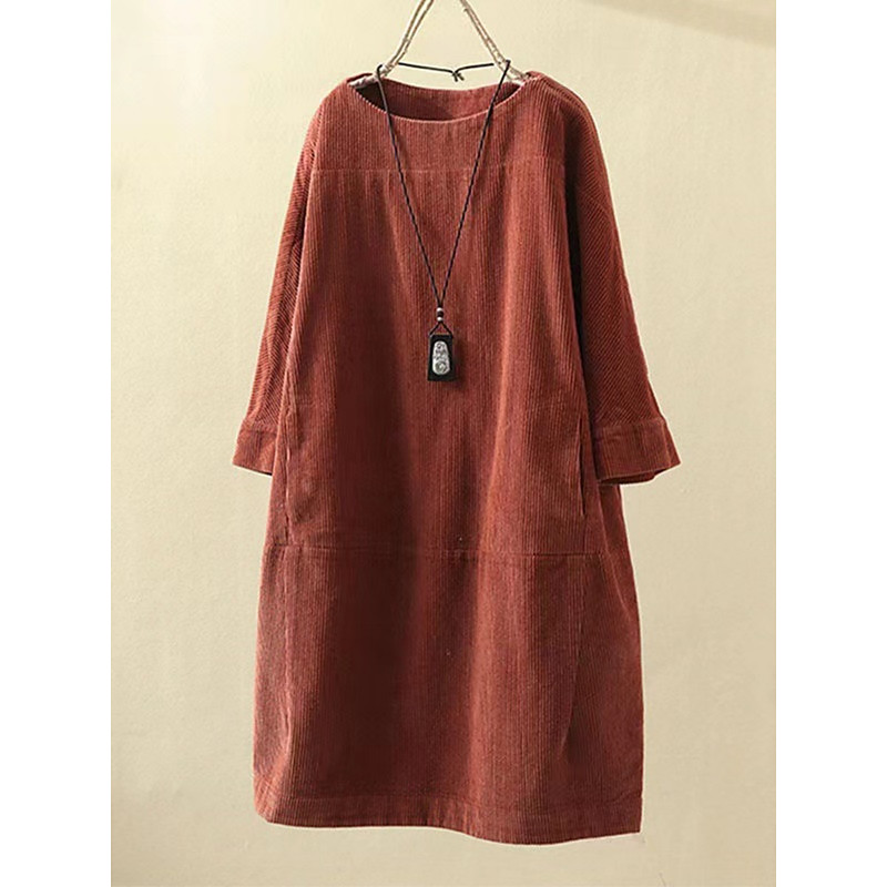 Women's Midi Dress Shift Dress Casual Daily Regular Fit Plain 3/4 Length Sleeve Crew Neck Navy Blue Orange Brown Green Spring Fall Winter