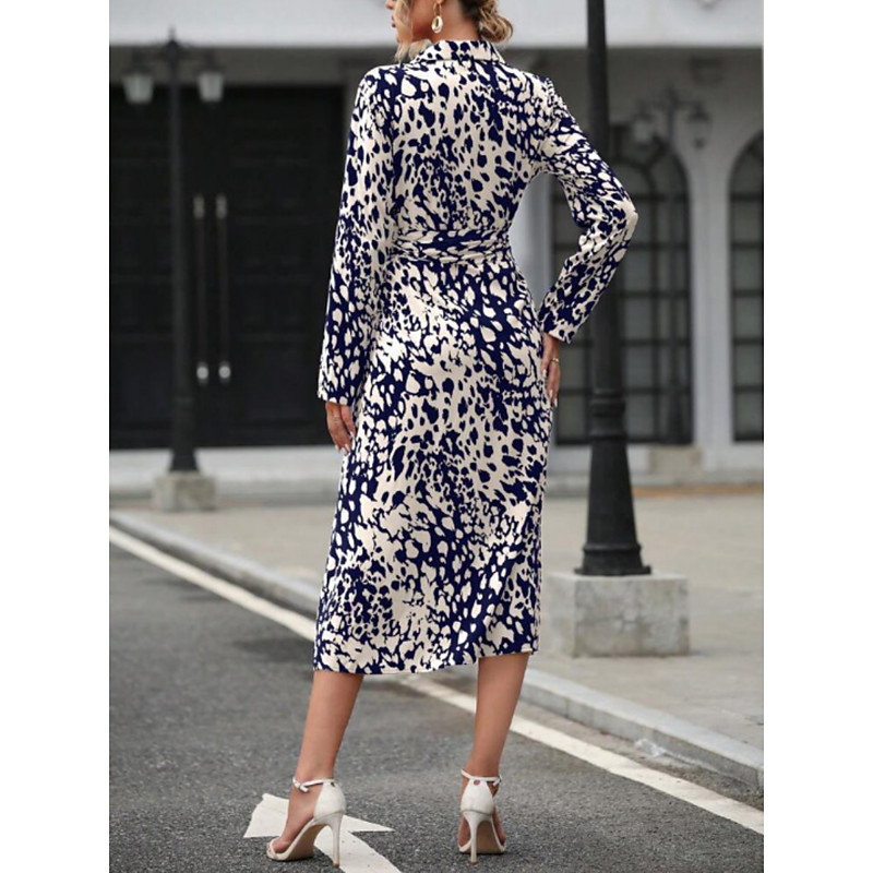 Women's Midi Dress A Line Dress Summer Dress Casual Daily Regular Fit Graphic Leopard Long Sleeve Lapel Navy Fuchsia Green Spring