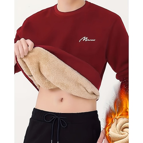Per uomo Felpa in pile Lounge Top Molto spesso Manica Lunga Top Athleisure Tinta unita Antivento Caldo Palestra Escursionismo Allenamento abbigliamento sportivo Abbigliamento sportivo Nero Bianco