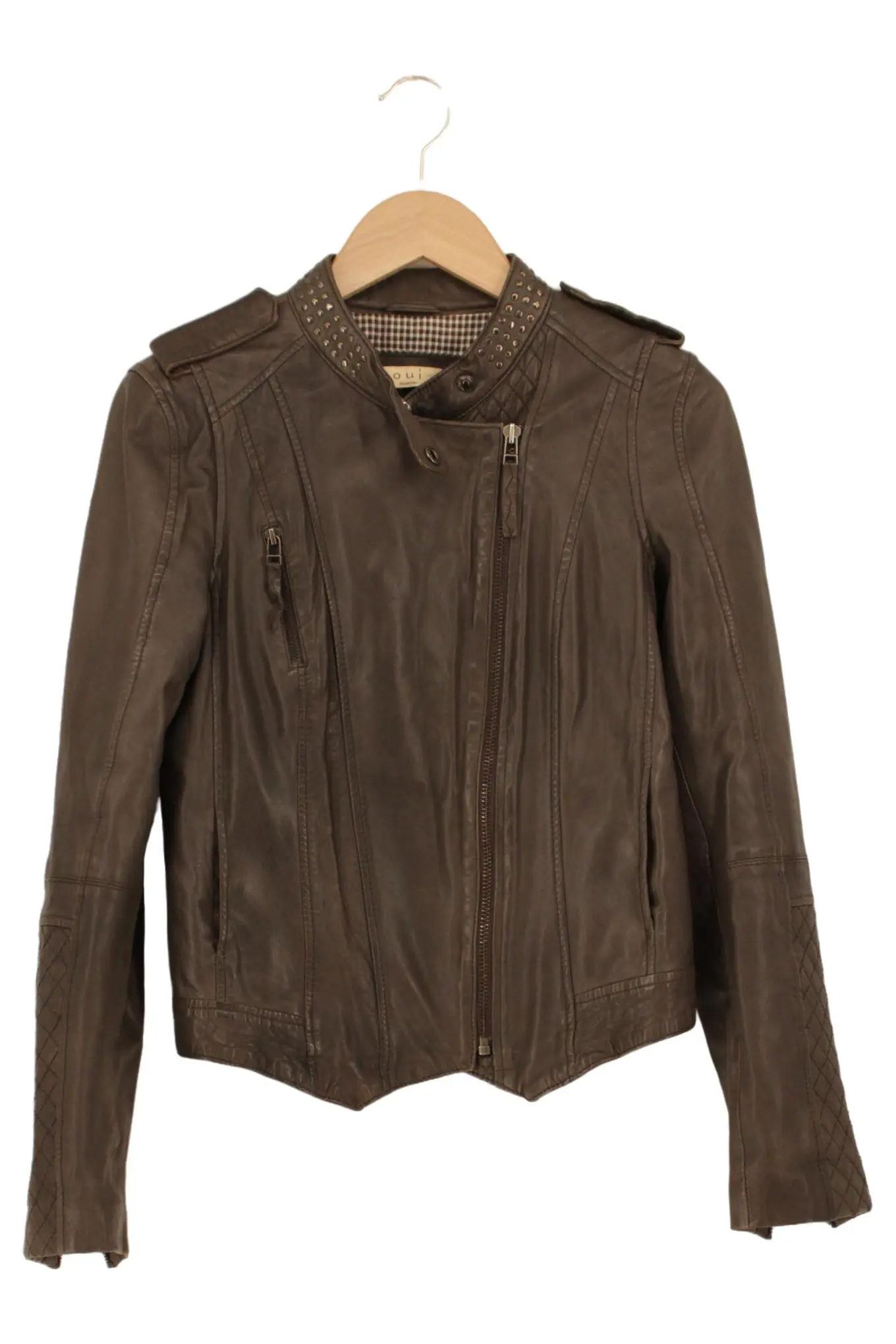 OUI Echtleder Damenjacke Braun Gr. 36 Vintage Look Top