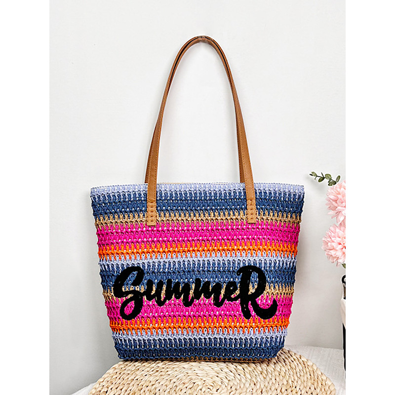 Women's Colorful Summer Tote Bag with Summer Print - Stylish Crochet Beach Tote Bag for Vacation and Poolside