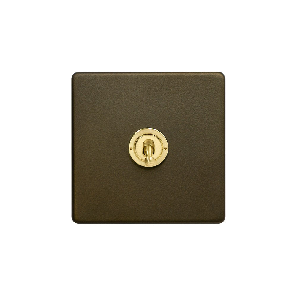 Soho Lighting Bronze with Brushed Brass Flat Plate 1 Gang Retractive Toggle Switch Screwless - Size: H 86mm X W 86mm