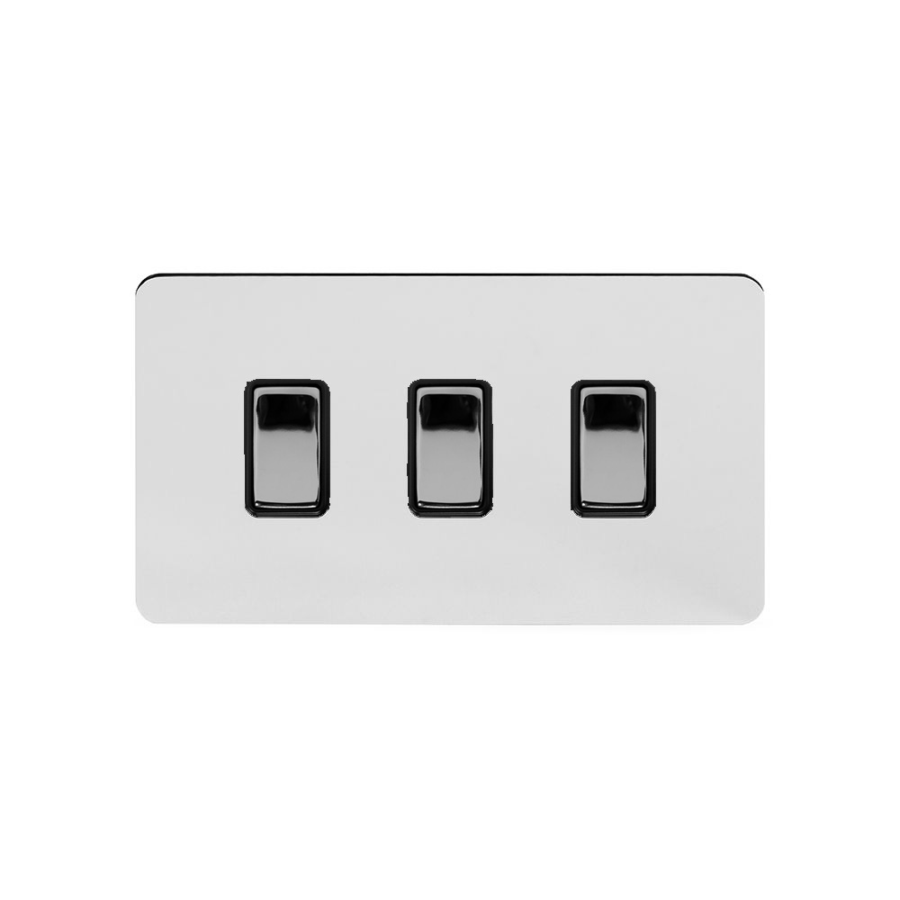 Soho Lighting Polished Chrome Flat Plate 3 Gang Switch With 1 Intermediate (2 x 2 Way Switch with 1 Intermediate) Bk Ins Screwless - Size: H 86mm X W