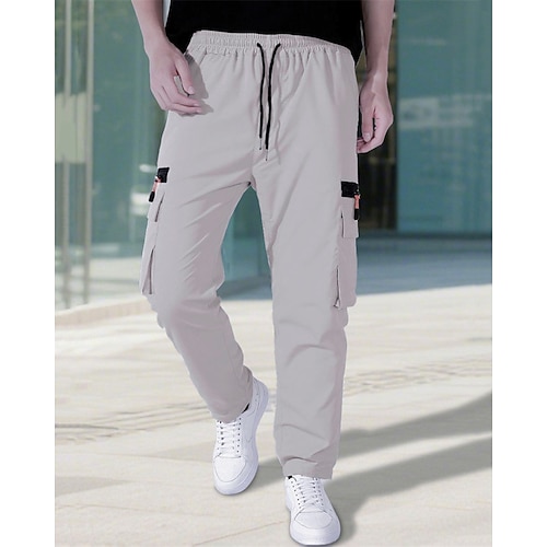 Per uomo Pantaloni cargo Pantaloni Vita elastica Multi tasca Polsino elastico Liscio Indossabile Esterno Giornaliero Campeggio e hiking Di tendenza Classico Nero Bianco