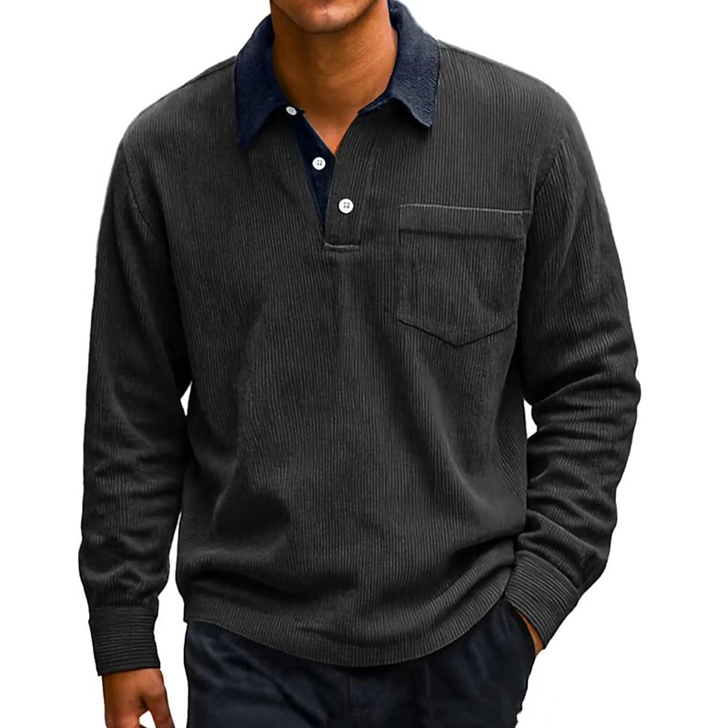 Men's Corduroy Shirt Polo Shirts Casual Sports Lapel Long Sleeve Fashion Basic Color Block Patchwork Buttons Fall Spring Fall Regular Fit Black White Light Green Gray Light Blue Dark Red Corduroy